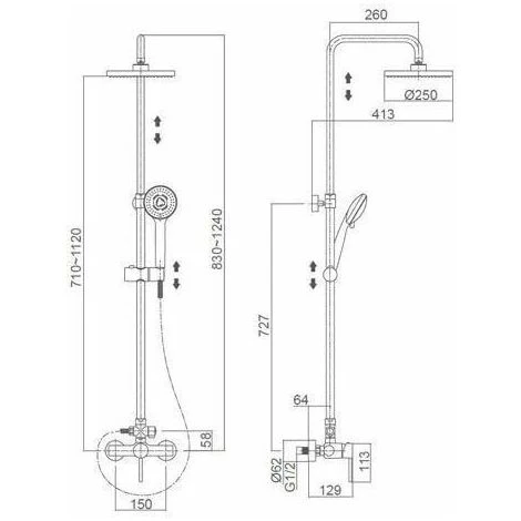 Barra de ducha acero inoxidable monomando rociador 25cm serie Ebro
