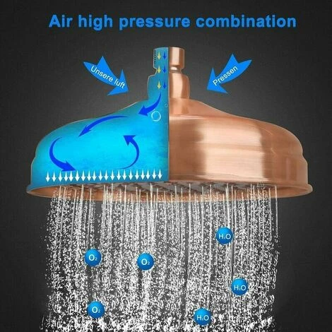 Cuando el aire entra en la ducha de mano y se mezcla con el agua, genera mucho oxígeno, lo que aumentará la presión del flujo de agua. El flujo de agua a través del canal de doble flujo con un diseño de presión especial aumentará la presión del agua nuevamente, lo que hará que la baja presión se despida fácilmente.