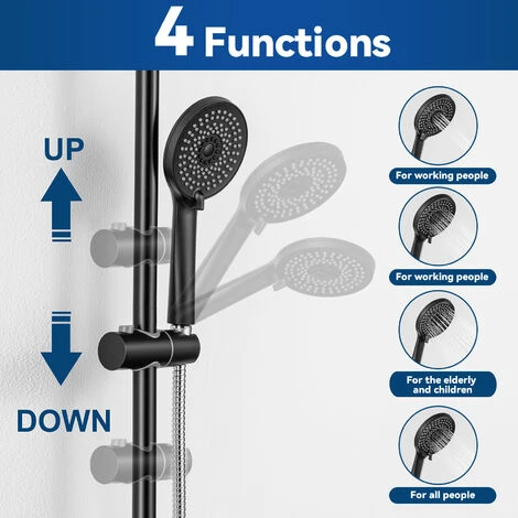 ♥ El sistema de ducha negro + cromo puede mantener la temperatura a 38 °C, lo que puede evitar que los ancianos y los niños se quemen.