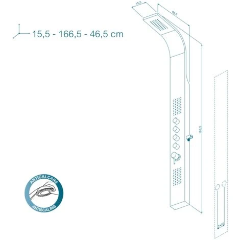 - 4 funciones seleccionables: alcachofa, ducha de mano y chorros horizontales «masaje» superiores e inferiores