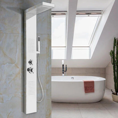 • Columna de ducha de acero inoxidable con ducha de lluvia