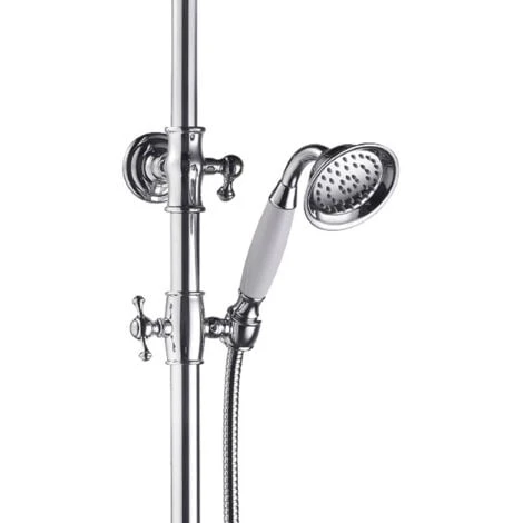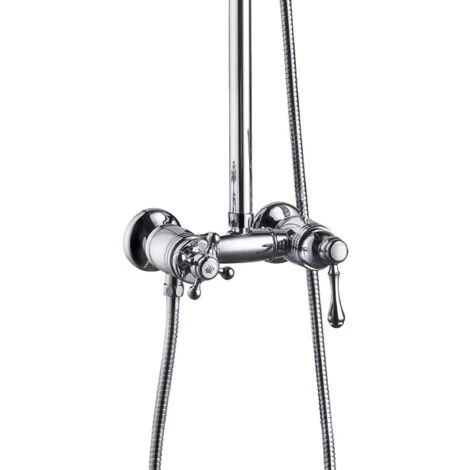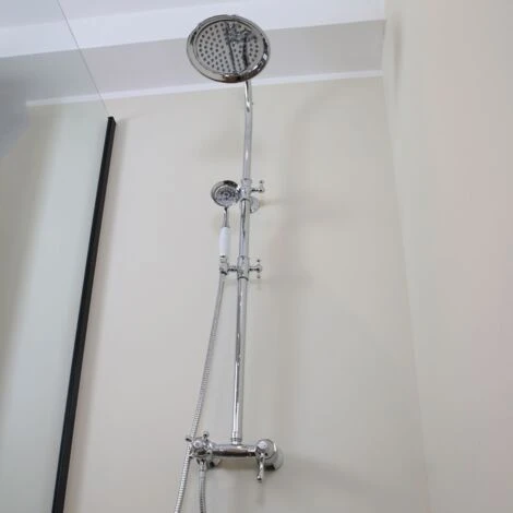 Descubra Leeds, la columna de ducha retro cromada con mezclador mecánico. Se compone de un cabezal redondo de diseño ABS y una ducha de chorro único, cromada y blanca. Se suministra con racores excéntricos y rosetas, por lo que será fácil de instalar.