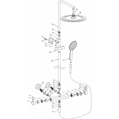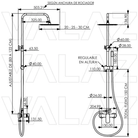 - Columna de ducha con una cabeza de ducha formato grande con opciones: Ø 20 cm / Ø 25 cm / Ø 30 cm