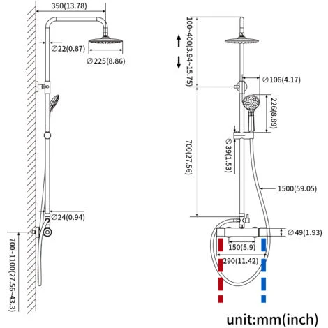 - 2 modos de salida de agua, ducha de cabeza + ducha de mano, puede elegir libremente. Le ofrece una experiencia de ducha confortable.
