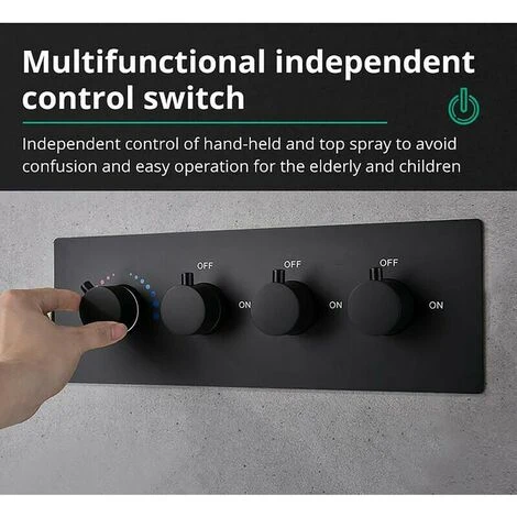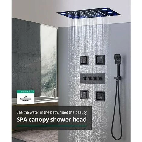 - 【Excelente rendimiento】 El juego de ducha está equipado con una ducha termostática de alta calidad. Se puede configurar una temperatura constante, como 38 °C, para evitar agua fría y caliente repentina; El sistema de ducha de bañera incluye: ducha de ducha, ducha de agua nebulizada SPA, ducha de mano, terapia de luz de color LED, etc., agua y electricidad separadas, más seguras.
