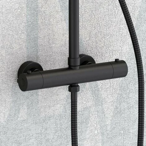 ? Materiales de alta calidad, todos los componentes del sistema de ducha con termostato cuentan con elementos metálicos de gran calidad y acabados en latón, fáciles de limpiar, que aportan ese toque de diseño elegante y moderno que buscas para tu hogar, destacan el tubo, fabricado en latón , así como el rociador, de acero inoxidable y salida con sistema antical, el flexo es de acero inoxidable , tuercas de latón y terminaciones en negro mate.