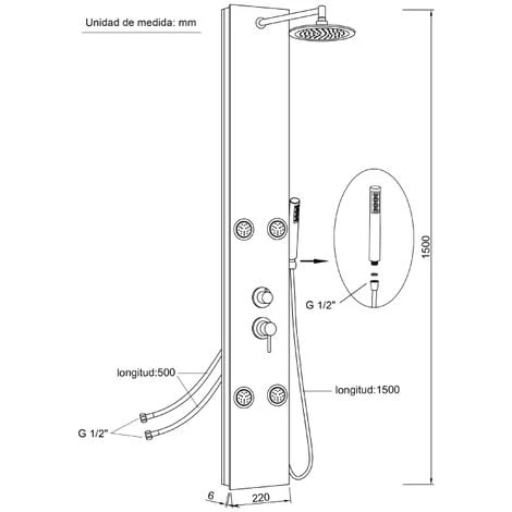 Rociador de ABS con brazo de acero inoxidable acabado en cromo.