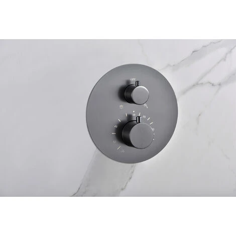 - Grifería termostática de latón black gun metal (PVD) de 2 vías.