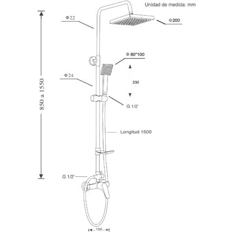 ¡AHORA EXTENSIBLE (85 cm a 125 cm)! No recomendable para instalación en bañeras.