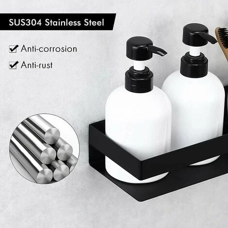Resistente al óxido: la bandeja del estante del baño negro está hecha de acero inoxidable 304 de alta calidad, que puede evitar la corrosión y el óxido, y tiene bajos costos de mantenimiento.