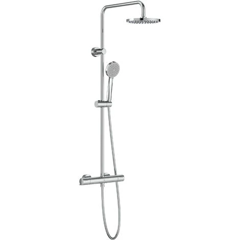 Columna termostática para ducha. Incluye rociador de ø 200 mm, ducha de mano de ø 100 mm de 1 función, flexible metálico de 1,7 m.