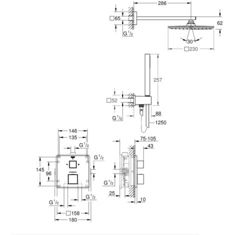 Con rosetón brazo cuadrado y rectangular< br />Compatible con Rainshower Allure y Euphoria Cube ducha fija cuadrada