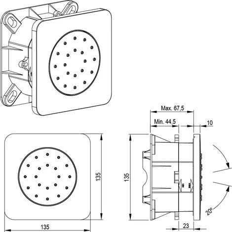 Jet de empotrar JET Cuadrado antical, orientable, con caja de instalación