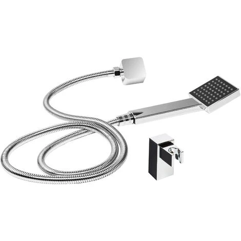 - Material: latón y acero inoxidable pulido con superficie cromada. Ducha de mano y soporte de sujeción de plástico, boquillas de silicona con tratamiento antical