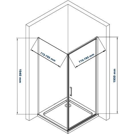 Mampara de ducha en esquina EX416S, de auténtico cristal NANO – 80 x 80 x 195 cm