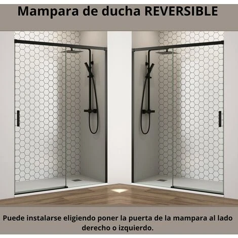 – Mampara de ba�o REVERSIBLE en transparente y serigraf�a (da igual en que lado vaya la puerta corredera) y Cierre Magn�tico.