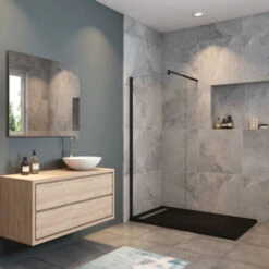 - Mampara de ducha estilo Walk in con barra de soporte de 70cm a 120cm