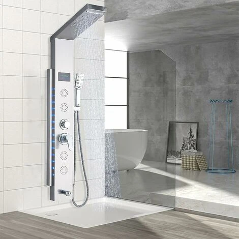 【FÁCIL DE INSTALAR】 Diseño montado en la pared, el panel de la ducha se puede instalar en solo unos pocos pasos con la guía de instalación y los accesorios incluidos