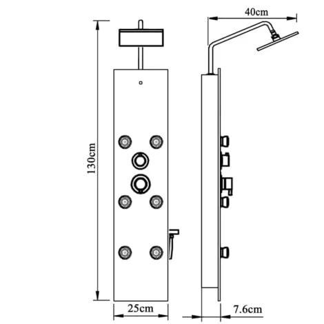 - Funciones: Ducha de estilo de lluvia, 6 jets de masaje corporal, 1 alcachofa para ducha manual
