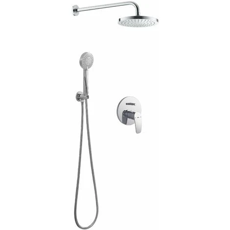 Incluye mezclador empotrable para baño-ducha, rociador circular ABS, brazo de ducha de pared, soporte toma de agua, flexo metálico y ducha de mano con 3 funciones.