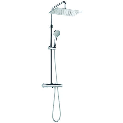 SQUARE – Columna termostática para ducha. Incluye rociador de 360×240 mm, ducha de mano de ø 100 mm de 3 funciones, flexible de PVC satinado de 1,75 m y soporte articulado regulable en altura
