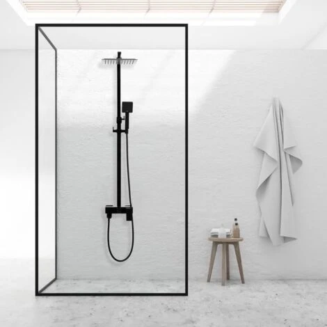 Conjunto de ducha negro – cuadrado con grifo para bañera – y ducha efecto lluvia 25 cm