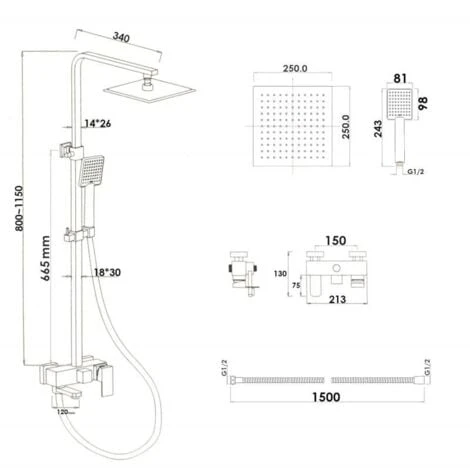 *** Antes de comprar el conjunto de ducha, compruebe atentamente las dimensiones del grifo con la posibilidad de instalarlo como conjunto con la bañera. En particular, verifique la altura a la que se instalará el conjunto, teniendo en cuenta la altura de los usuarios.