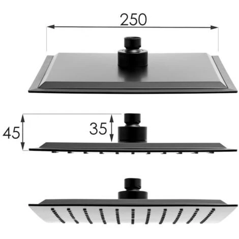 - Ducha de lluvia grande con un tamaño de 25 x 25 cm.