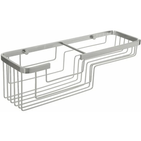 Cestillo de la Coleccion Aluminium, de aluminio brillante, de diseño moderno,rectangular a dos niveles, muy practco, de 12×11,5×37 cm. Sistema de fijacion con tornillos y compatible co QuickFix, sistema adhesivo con microventosas sin taladrar. Carga max. 5 kgs