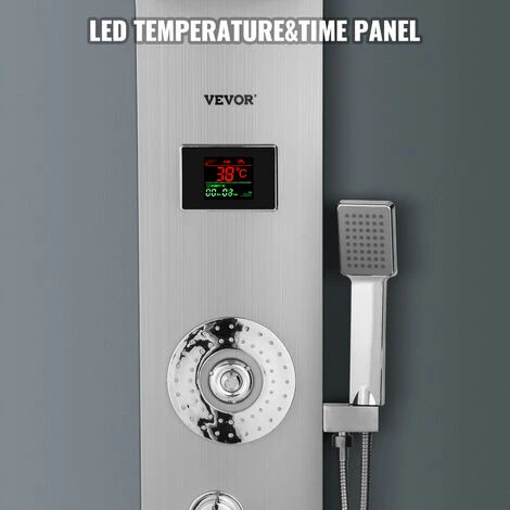 El panel LED actualizado está incorporado en el medio, muestra la temperatura del agua en tiempo real y el tiempo de ducha. Ayudarle a seleccionar la mejor temperatura del agua y mantenerse alejado del escaldado.